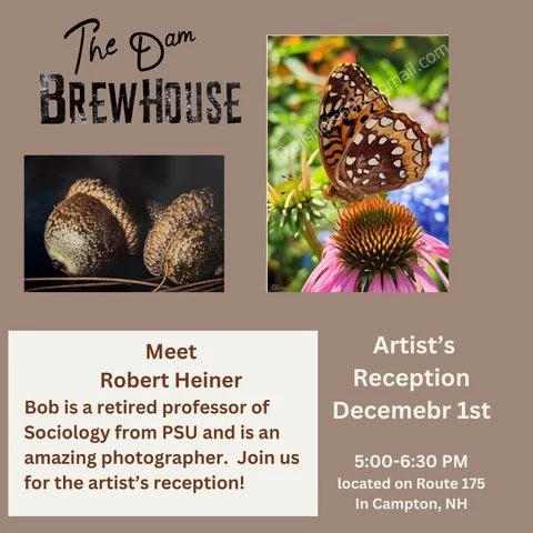 Join Bob at the Dam Brew House located on Rte 175 in Campton, NH. Enjoy his photography while trying one of the brews or spirits made on site. The reception is December 1st from 5-6:30 PM.