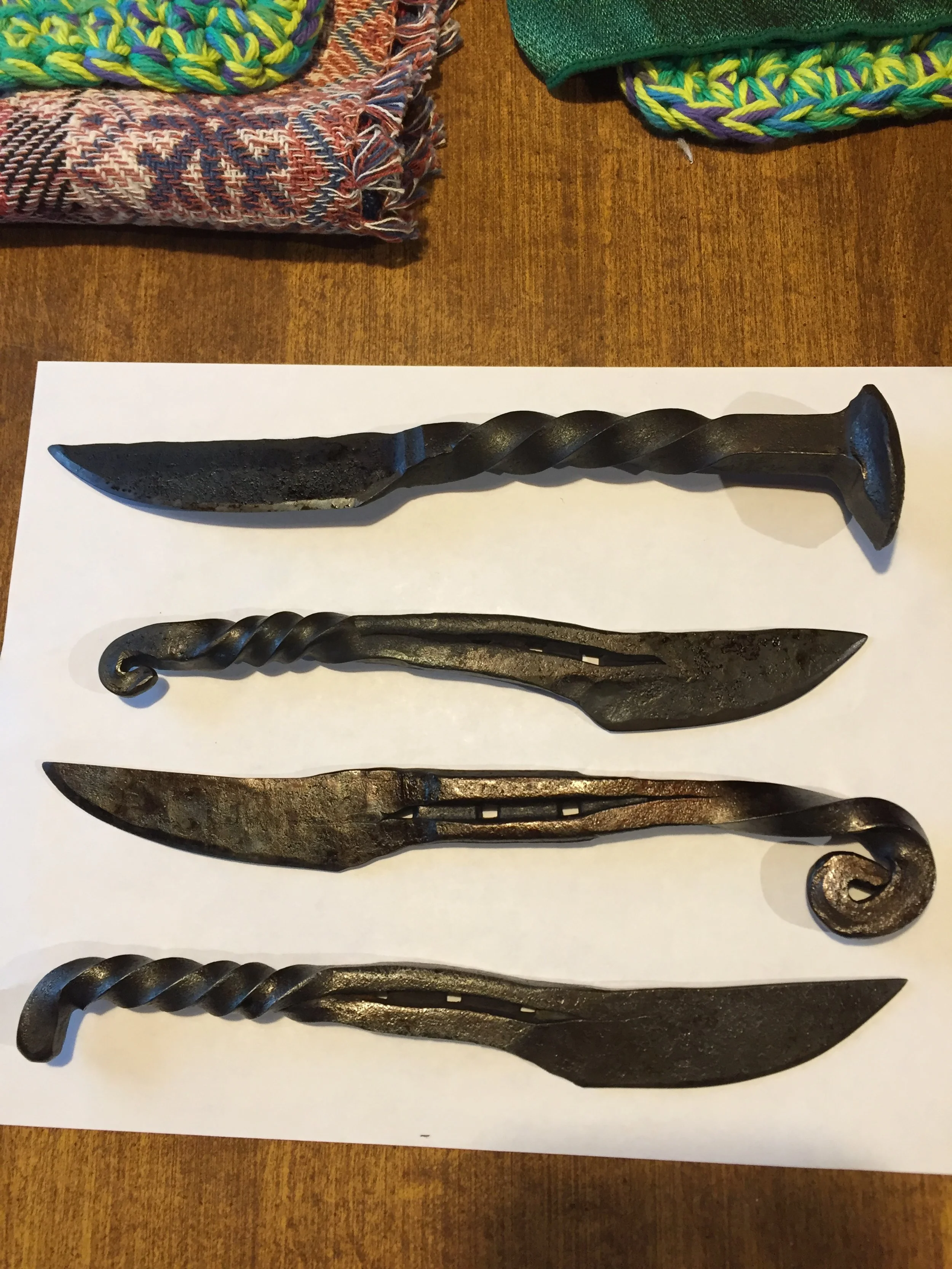 I am an artisan blacksmith and a member of the League of NH Craftsmen. As I was about to be laid off from Digital/Compaq in 1998, I watched a blacksmith demonstration at a state fair and got hooked. I used my severance to build my own little shop and got started creating fun yet functional pieces, often using re-purposed material such as old horseshoes. I took a 1-day class at the New England Blacksmiths, in the Brentwood, NH location to learn which end of the hammer to hold! Lots of floral and “critters” like moose, rams, and owls followed. I have moose, horse, and owl hooks, letter openers, and paper towel holders all over the U.S. Filling an ETSY order for a moose coat hook shipped to Alaska was great fun!