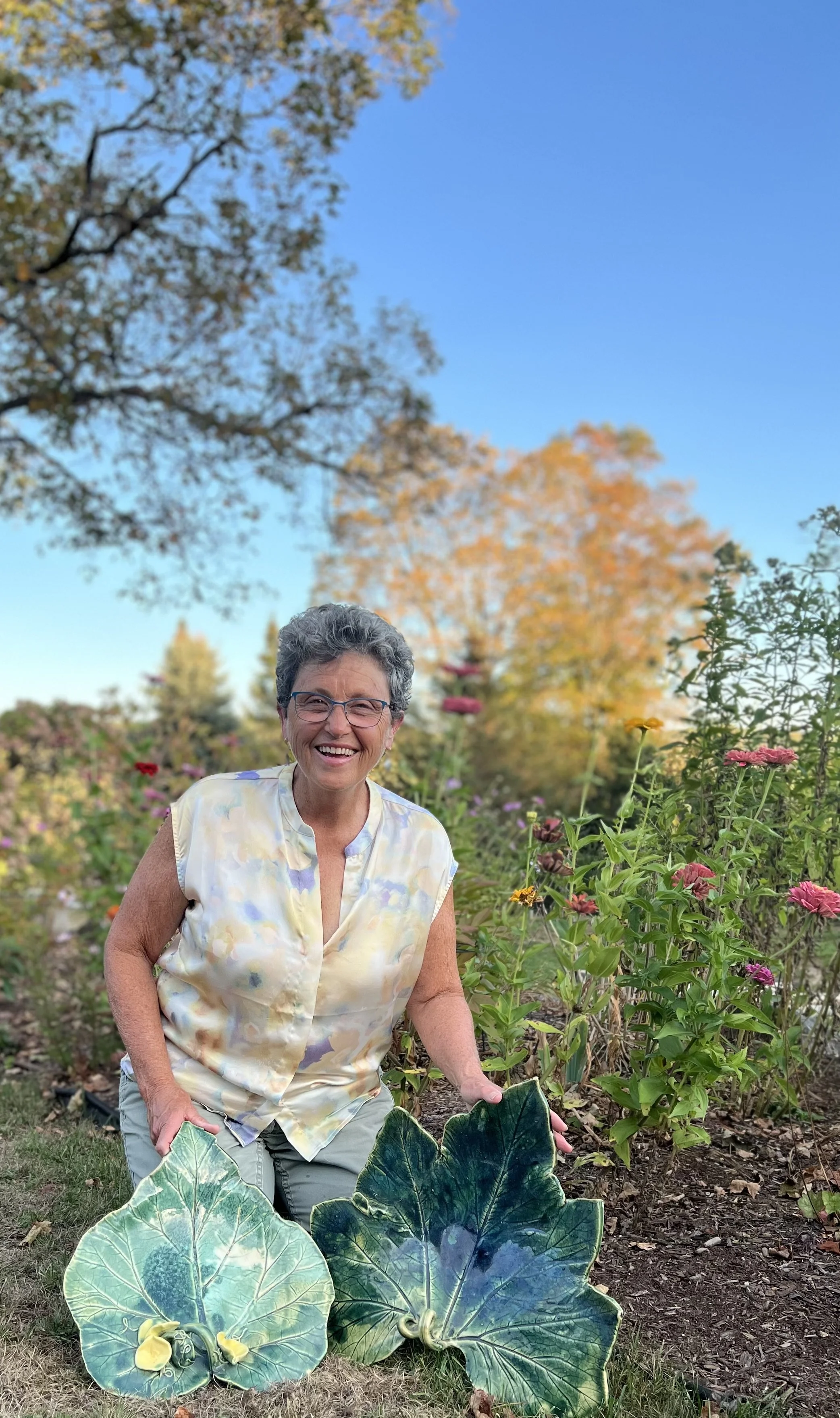 Joan Glidden is a native of New Hampshire, having grown up in Ashland and raised her own family there. She is an operating room nurse by trade and a potter extraordinaire. She has been making pottery for over fifty years. Her work is both decorative and functional. The plants in my gardens, fields and woodlands illuminate the textures of organic material in clay. I enjoy the mystery of the glazes and how they overlap and meld together during the firing process. The textures of the leaves, herbs, and stems are often the centerpiece of my work. I work in my own studio using the wheel and building pieces by hand. Her yarn bowl, which looks like a sheep, is a popular item in the gallery.