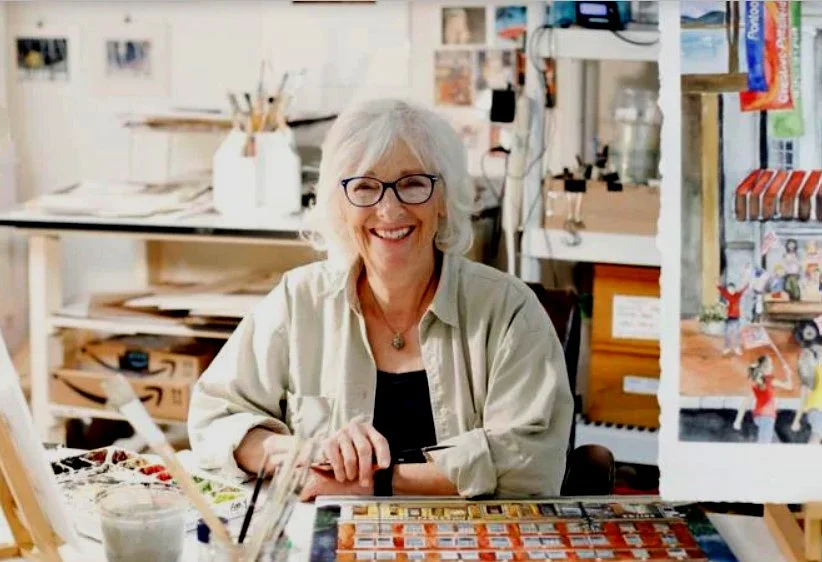 Her website holds her full portfolio…you will see a wide variety of subjects captured in her paintings, such as many of her house portraits, bustling marketplaces, bucolic farmlands, quaint villages, street scenes, lighthouses, landscapes and seacoasts, JAZZ series, nature inspired paintings and lots and lots of buildings...and that’s just to name a few.