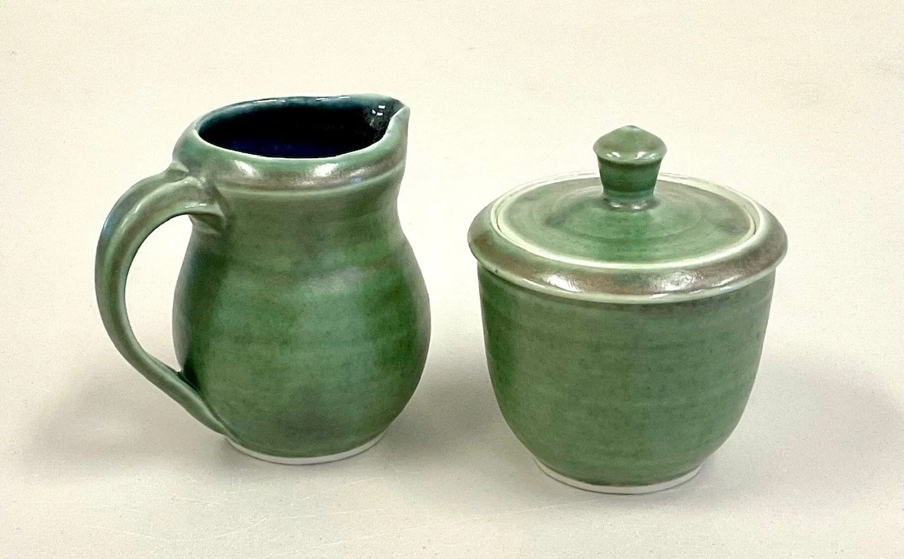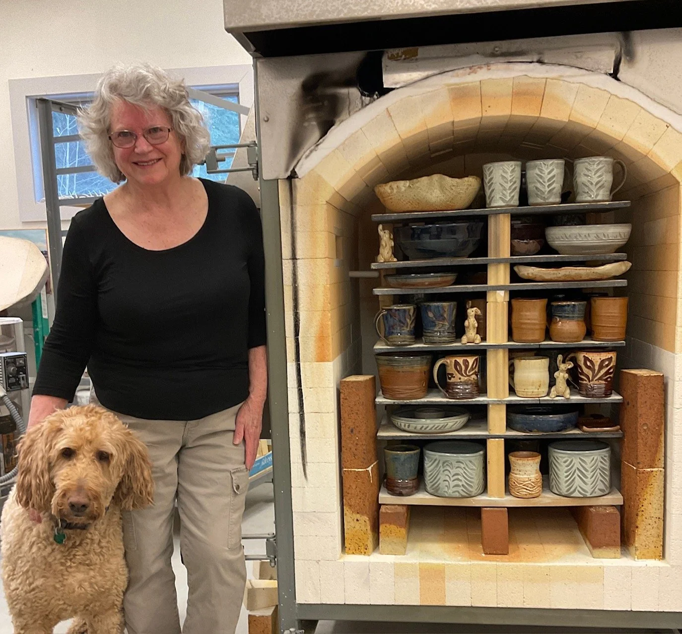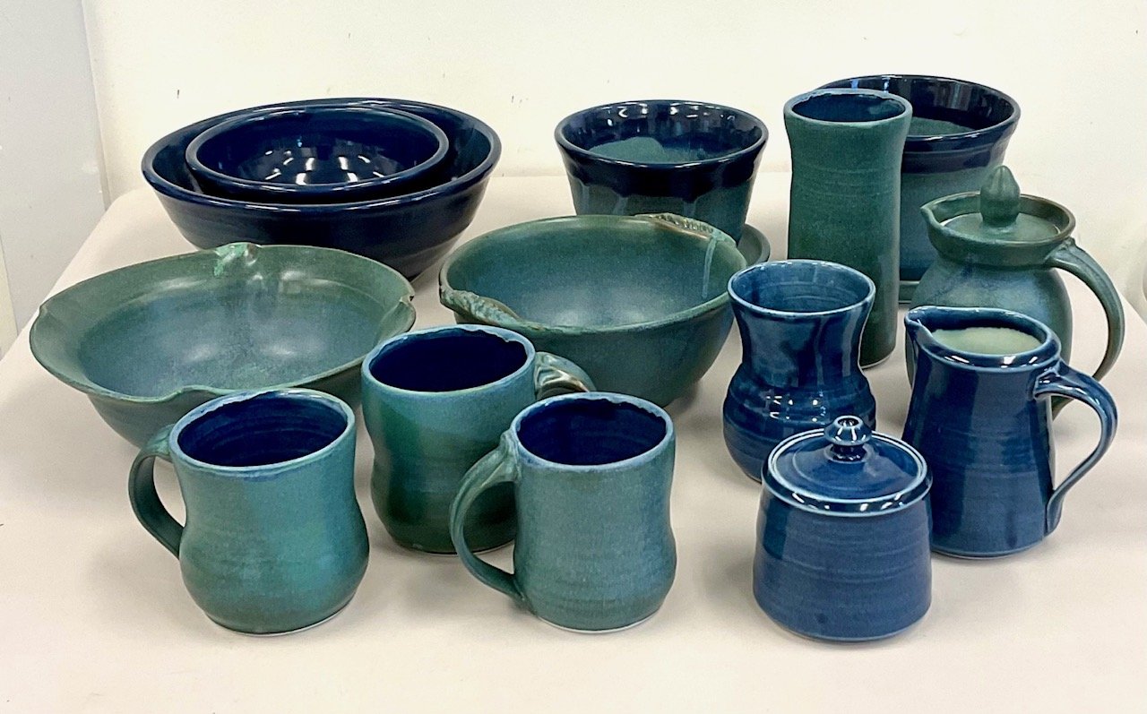 My studio at home, built in 2009, accommodates my expanded pursuit of the functional forms of pottery in stoneware and porcelain. I make my own glazes and fire the glazed work in a gas-fired kiln. What continues to attract me to functional pottery is that it is made by hands, and it is made to be touched and used by human hands. I enjoy that the forms are “purposeful” and I want them to be inviting to handle and successful and satisfying to use. While the forms need to be strong to be functional, I want them to have an original spirit, with glaze and textural elements adding color and visual interest.