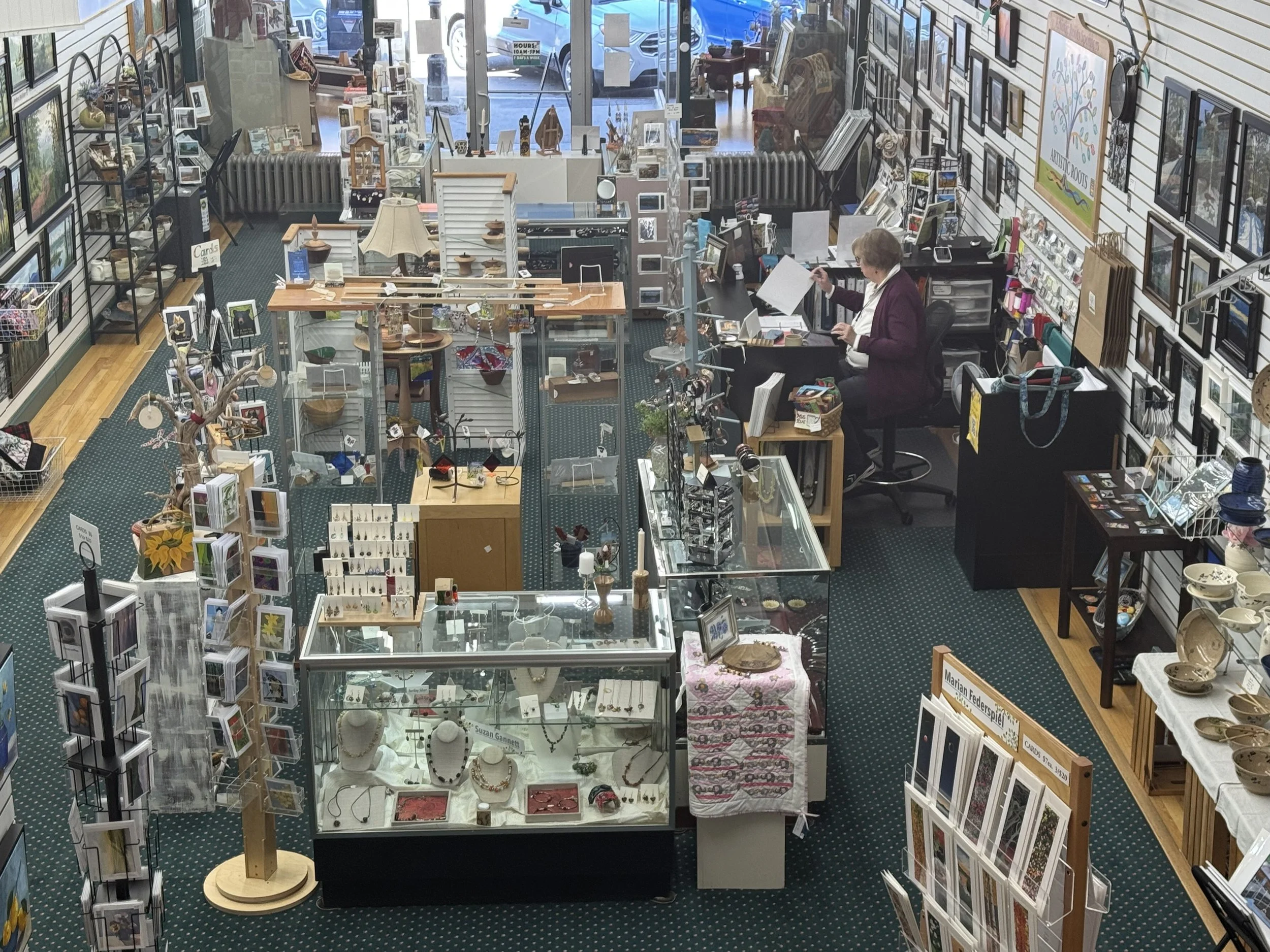 Artistic Roots is a juried cooperative art gallery and teaching center. We have over forty local artisans who show their work here. As a non-profit, our goals are as follows: